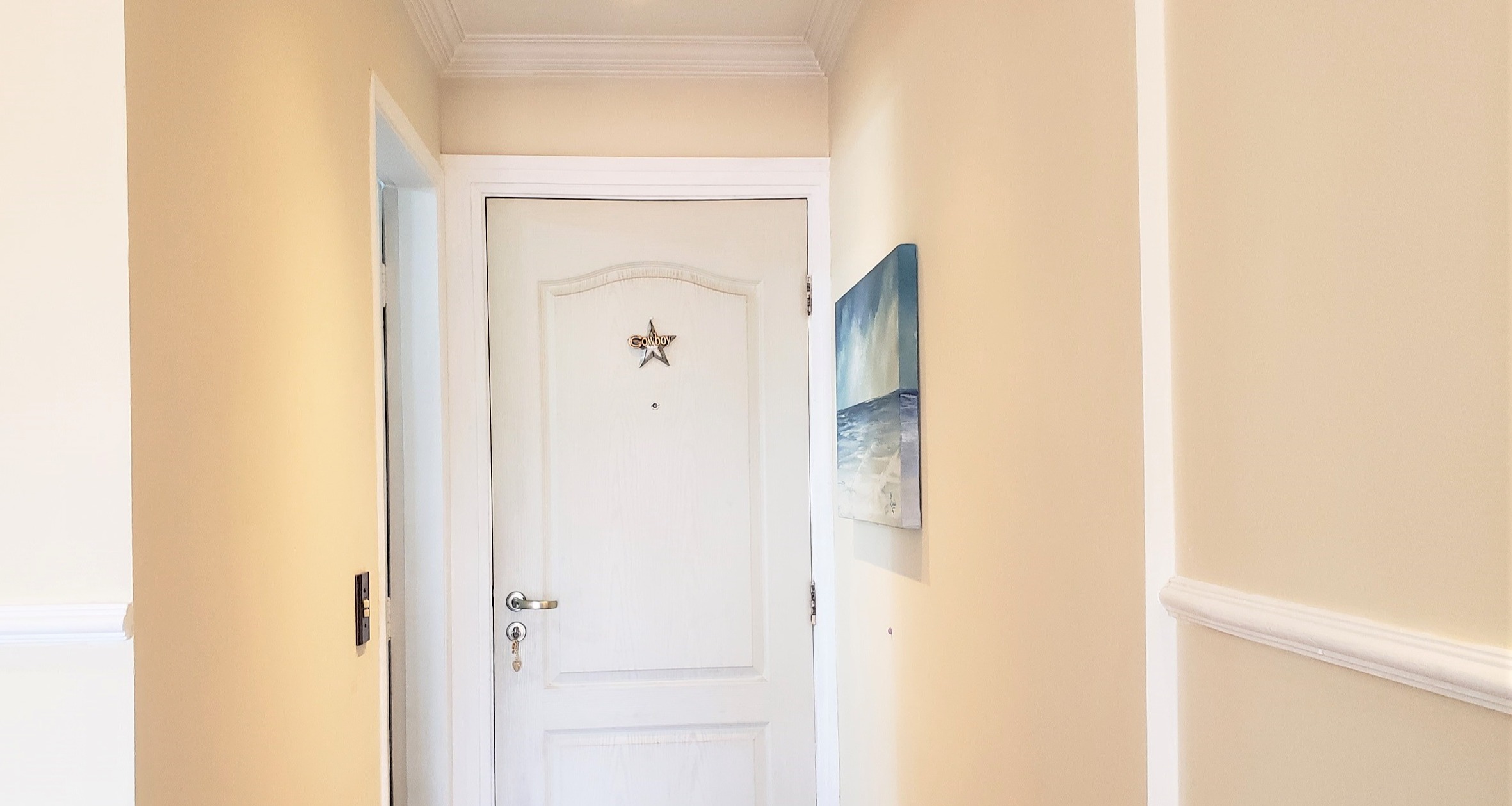 No corredor a luminária pendente estava muito alta e precisava de restauração